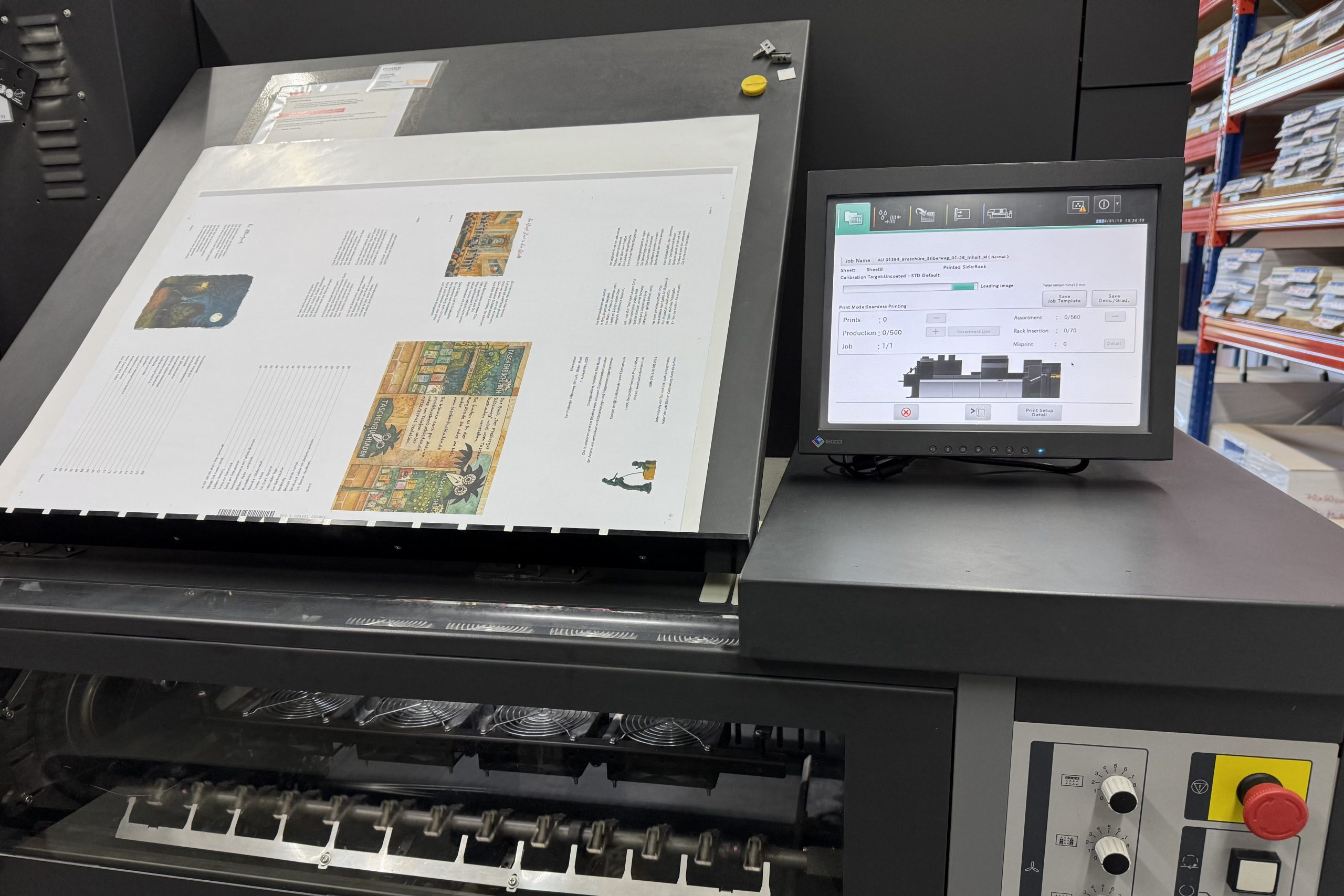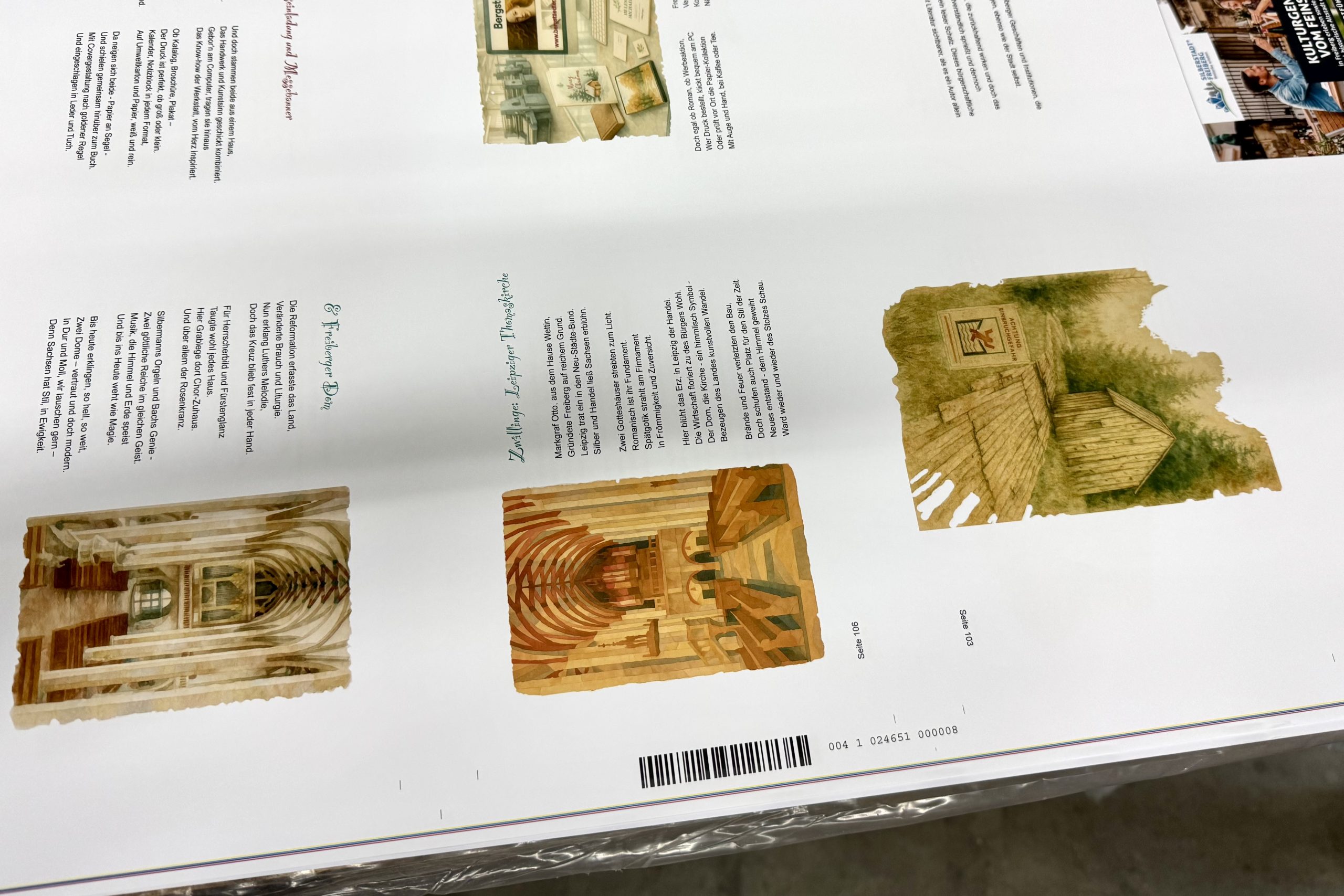 Zu Besuch in der Freiberger Druckerei Bergstädter. In der vollautomatischen Druckstrecke entstehen die Druckbögen. Durch den Barcode an der Seite weiß die Maschine genau, was und in welcher Position sie auf die Rückseite drucken soll. Zauberei!