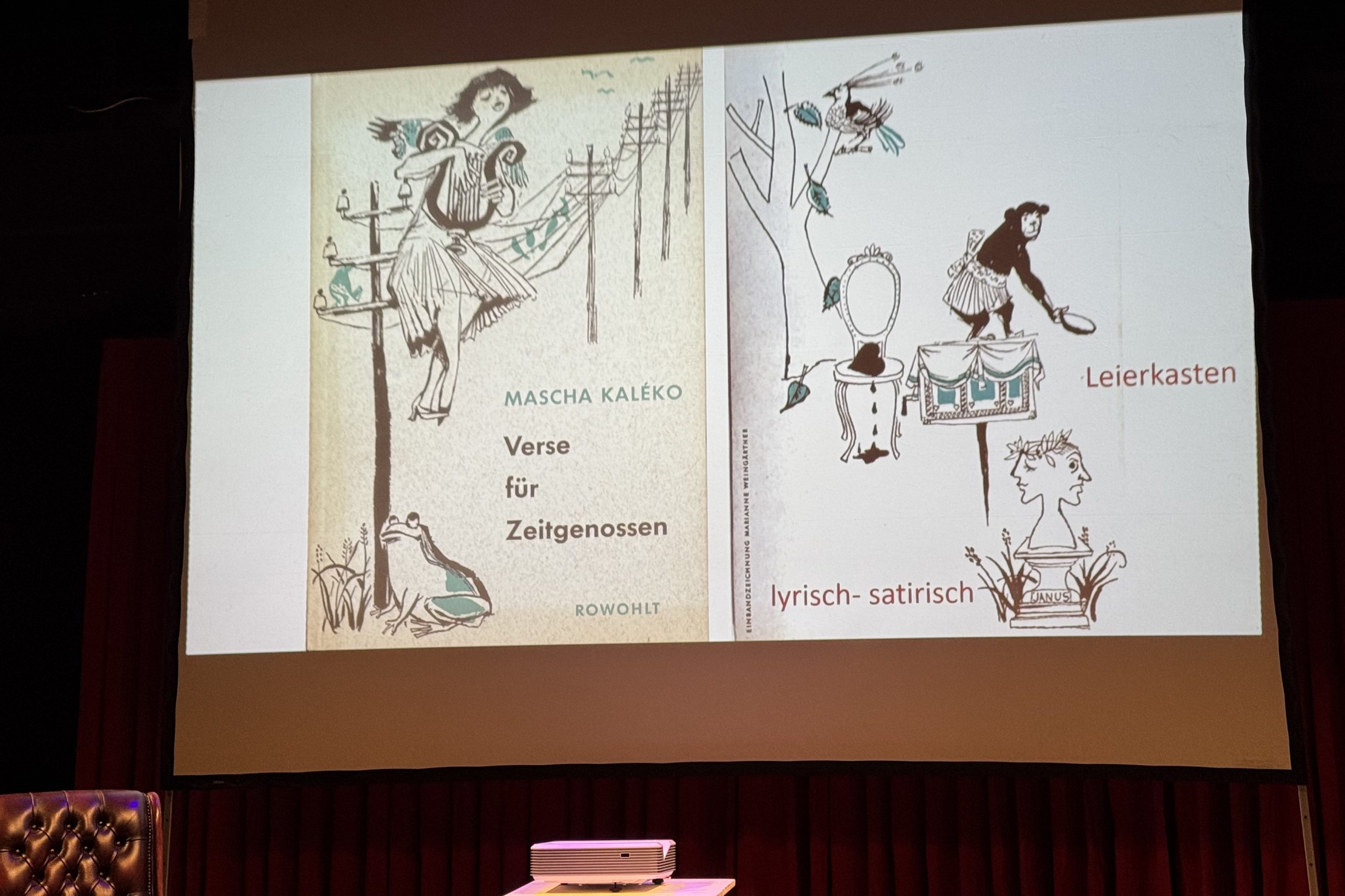 Dr. Julia Meyer, Direktorin der Universitätsbibliothek, führte anschaulich und kenntnisreich durch diesen Kosmos. Mit projizierten Originalbuchcovern machte sie Kalékos Lebensstationen sichtbar, erklärte jüdische Zahlenmystik, wiederkehrende Motive und biografische Brüche. Das wirkte nie trocken, sondern lebendig, fast wie ein Gespräch mit der Dichterin selbst.